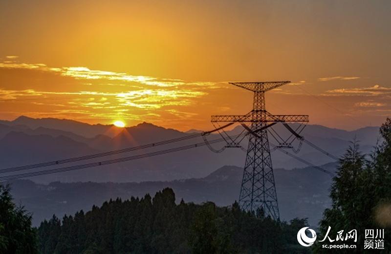 位于瀘州市古藺縣古藺鎮火星村的±800kV賓金線339號塔在夕陽的余暉下屹立于群山環抱之中。安偉攝