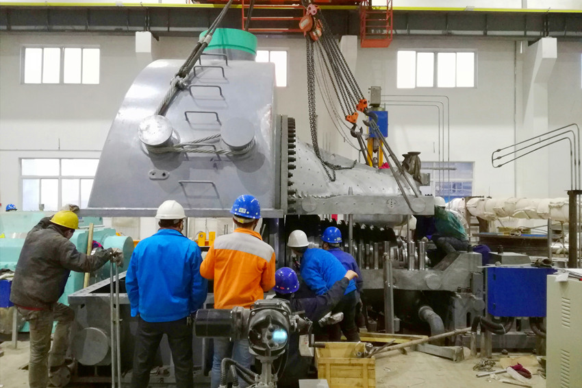 國內首臺50MW等級超高溫超高壓雙缸高轉速再熱發電汽輪機正在津西鋼鐵項目現場進行復裝。東方汽輪機供圖
