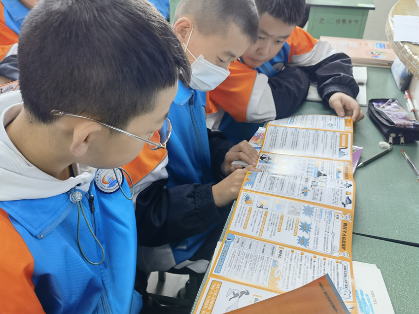 同學們閱讀網絡安全宣傳資料。朝天區融媒體中心供圖
