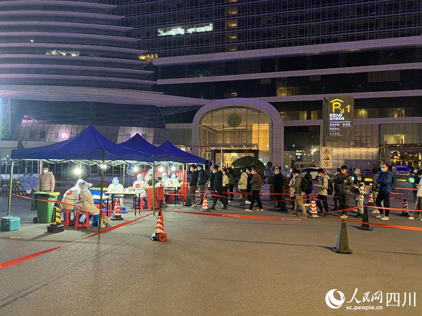 成都市錦江區成龍路街道華新社區核酸檢測點,群眾正在有序接受核酸檢測。人民網 趙祖樂攝