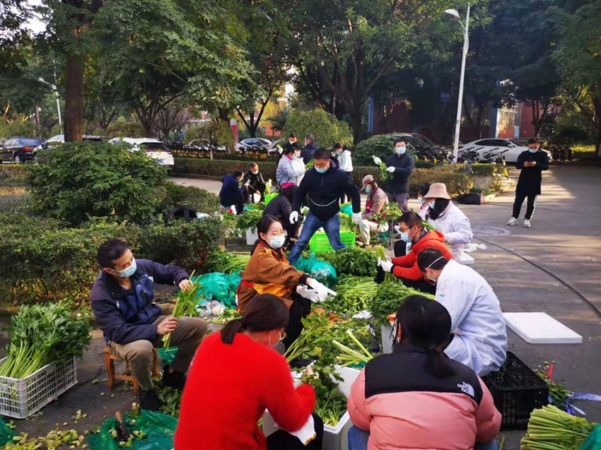 “成理攀登志愿服務隊”正在擇菜。成都理工大學供圖