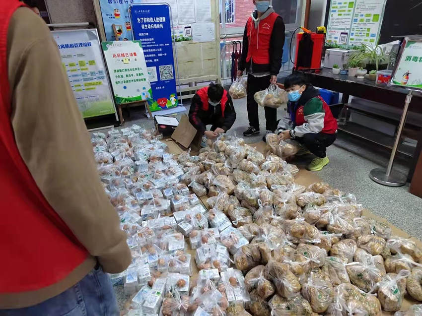 對待裝餐,老師們像對待科學一樣嚴謹。為了最快速度讓學生吃上熱騰騰的飯菜,博導、沉積地質研究院研究員郎咸國所在的小分隊吸取其他小分隊的經驗,將每種早餐的裝盤順序、裝餐人的站位、大家之間的配合都進行了研究!霸顼埼覀円o他們裝饅頭、雞蛋、牛奶,先裝哪個,誰來裝誰來放,我們都形成了方案!崩上虈硎,他也被“00后”學生志愿者感動,“我們學校這么快完成3萬多人的核酸檢測,沒有大家的通力合作,幾乎是不可能的任務!