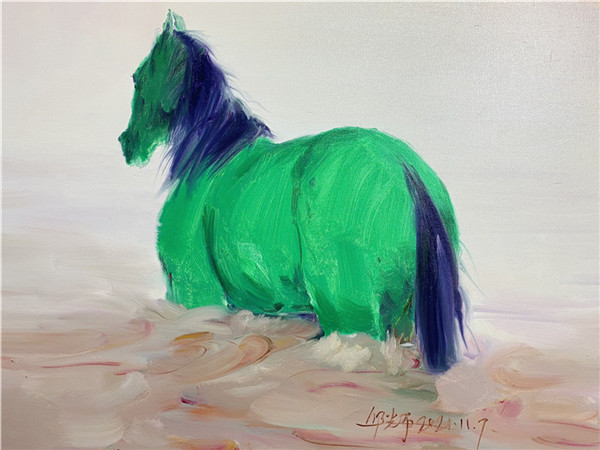 守住綠碼 成都一高校教師創作油畫《綠馬》