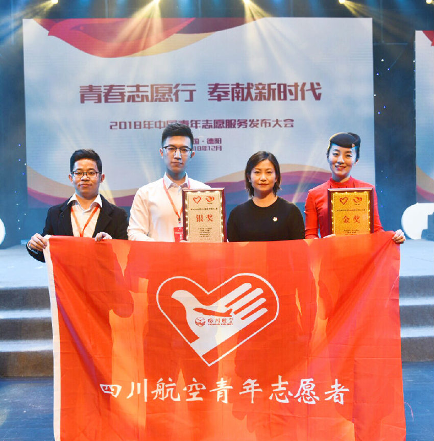 四川航空志愿者榮獲第四屆中國青年志愿服務項目大賽一金一銀。川航集團供圖