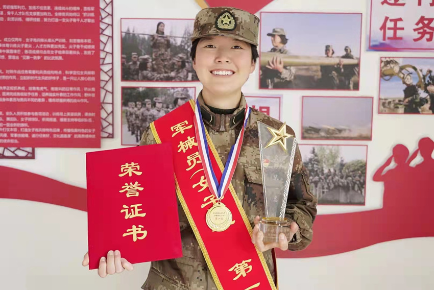 王茜茜獲得比武第一名。陸軍第77集團軍某炮兵旅供圖
