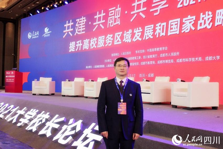 瀘州職業技術學院黨委書記何杰在人民網2021大學校長論壇上。人民網 張玉琳攝