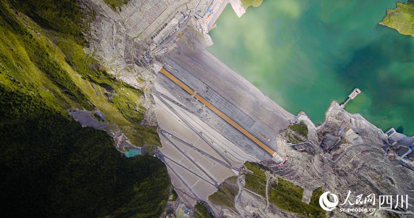 航拍雅礱江兩河口水電站大壩。王愛國攝