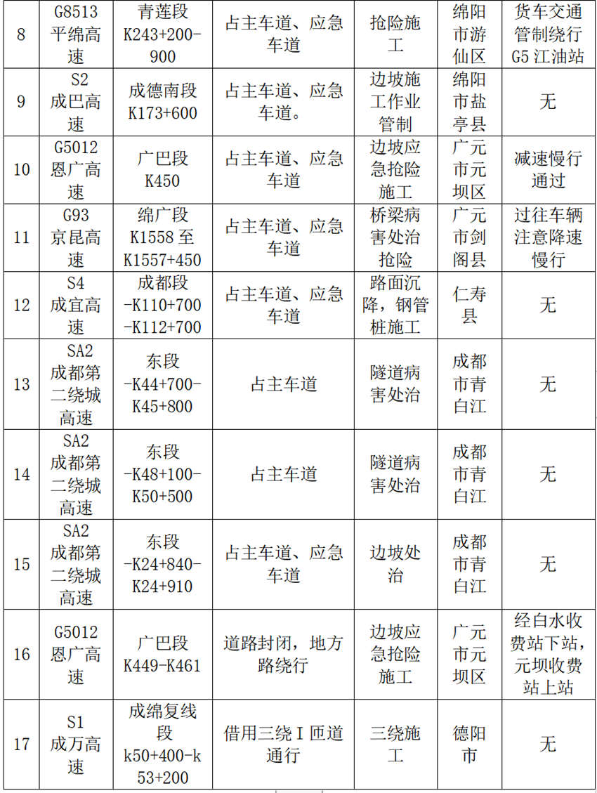 其他時段,高速交警將根據轄區路網車流變化,適時采取暫緩放行、間斷放行的臨時交通管制措施。同時,對確需通過高速公路運輸機場航空燃油、高速公路加油站所需燃油以及涉及民生所需等特殊情況下的;愤\輸車輛,在監管下安全行駛,就近、短暫通過高速公路。元旦假期間,高速公路施工路段一律停止作業,對因特殊情況不能撤場的施工路段,將嚴格規范施工區域相關警示提示標志及安全防護設施。