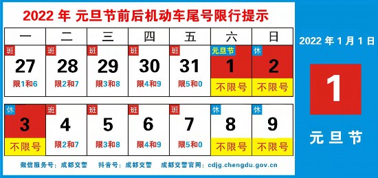 原標題:@成都市市民 2022年元旦節期間3天都不限號