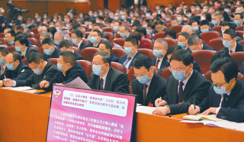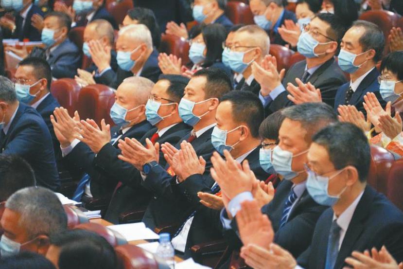 聆聽省政協常委會工作報告,委員們報以熱烈掌聲。