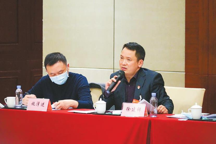 小組會議中,徐建祥委員(右)建議,加快推進成都至格爾木鐵路的建設。