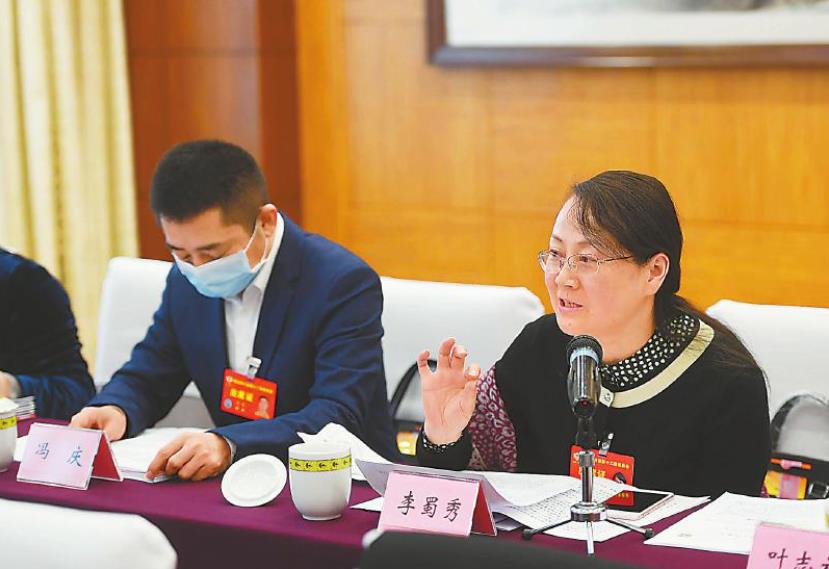 小組會議中,李蜀秀委員(右)建議,在“雙減”背景下,讓每個學生都能掌握至少1至2項體育或藝術特長,讓體育美育成為基礎教育,使學生得以全面發展。