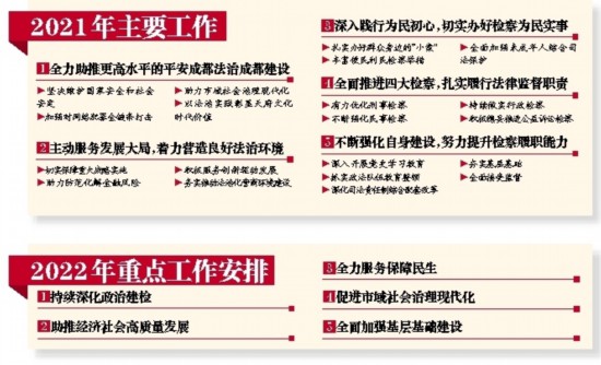 邁步2022年,全市檢察機關將持續深化政治建檢,助推經濟社會高質量發展,全力服務保障民生,促進市域社會治理現代化,全面加強基層基礎建設,積極回應人民群眾的法治需求,為成都建設踐行新發展理念的公園城市示范區提供有力檢察保障。(成都日報記者 李菲菲)