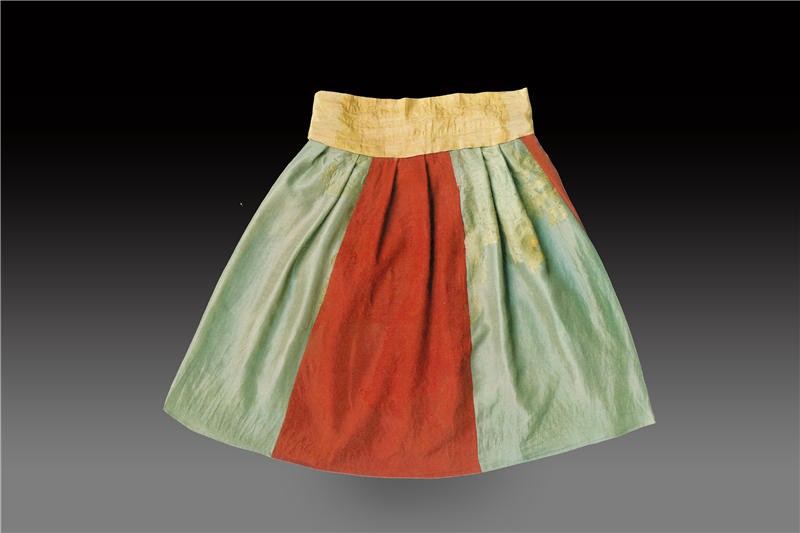 甘肅省文物考古研究所的緋碧裙,有碧、緋兩色,共6片,采用裙幅之間跳色拼接織造,是魏晉南北朝時期的“時尚爆款”。楊勇供圖