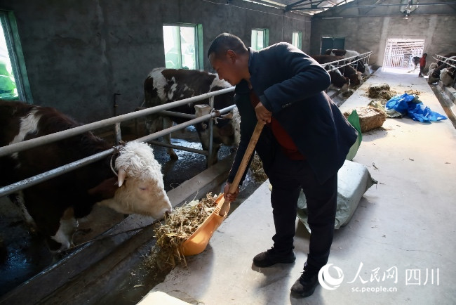 正在養牛場忙碌的洛古有格。人民網 朱虹攝
