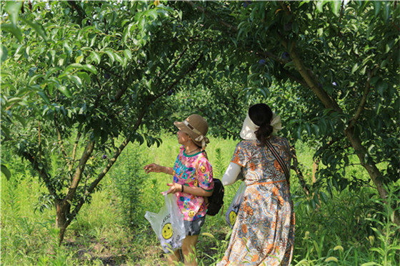 “我們從朋友圈看見王家溝的宣傳,感覺很不錯,于是就約上幾個朋友一起來了。昨晚就訂了餐,今天準備摘了李子,就去吃他們這里的特色魚。這里真的很漂亮,準備等家里孩子放了假,再帶他們一起來耍一圈!庇慰颓裉m說。