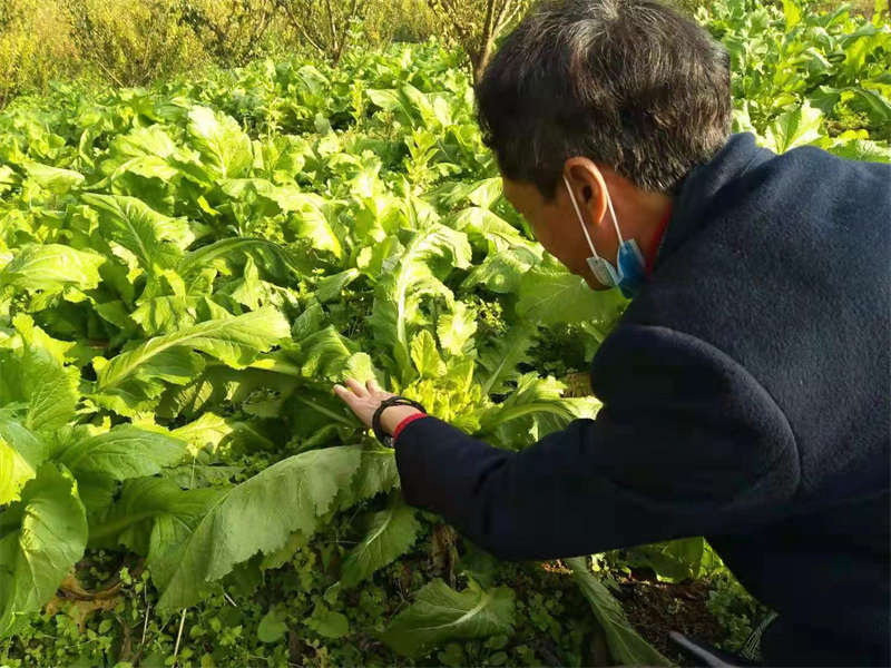 周義雙查看蔬菜生長。蒲正軍攝