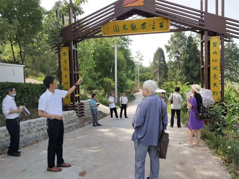 周義雙給采風團介紹斗笠村情況。高翔攝