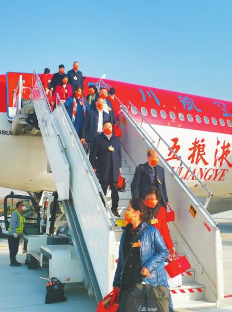 3月3日下午,出席全國政協十三屆五次會議的部分住川全國政協委員抵達北京。 黃靜 攝