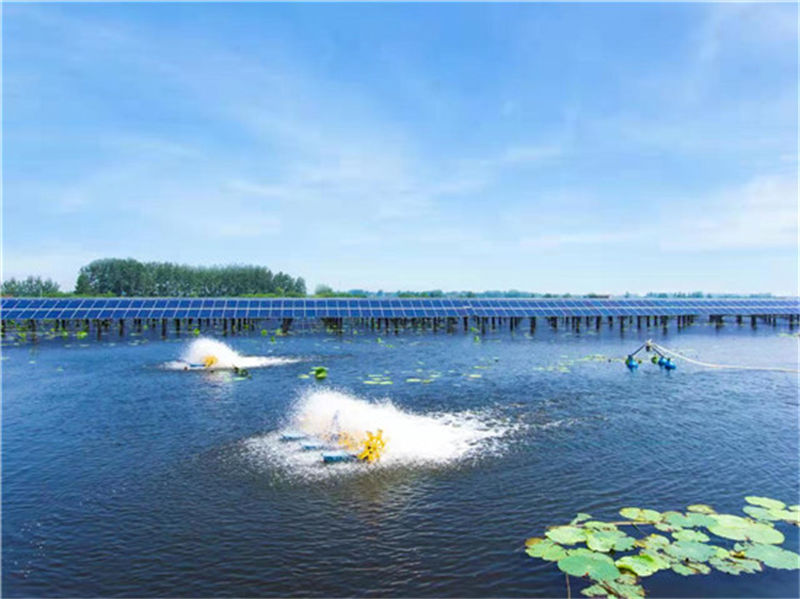 漁光一體:水上發電,水下養魚。通威集團供圖