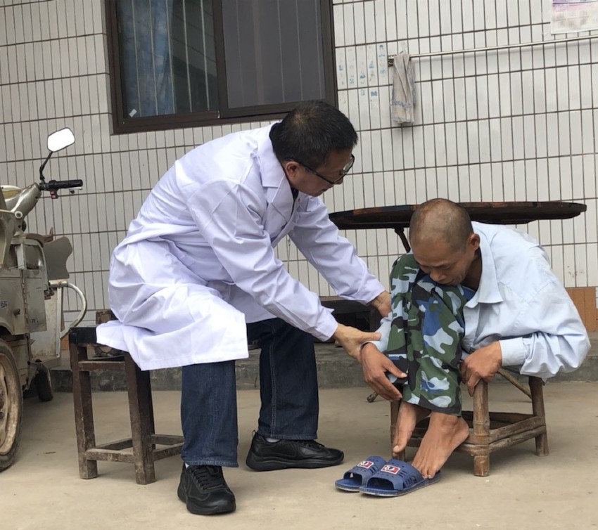 梁益建在病患家中對其進行康復狀況監測。成都市第三人民醫院供圖