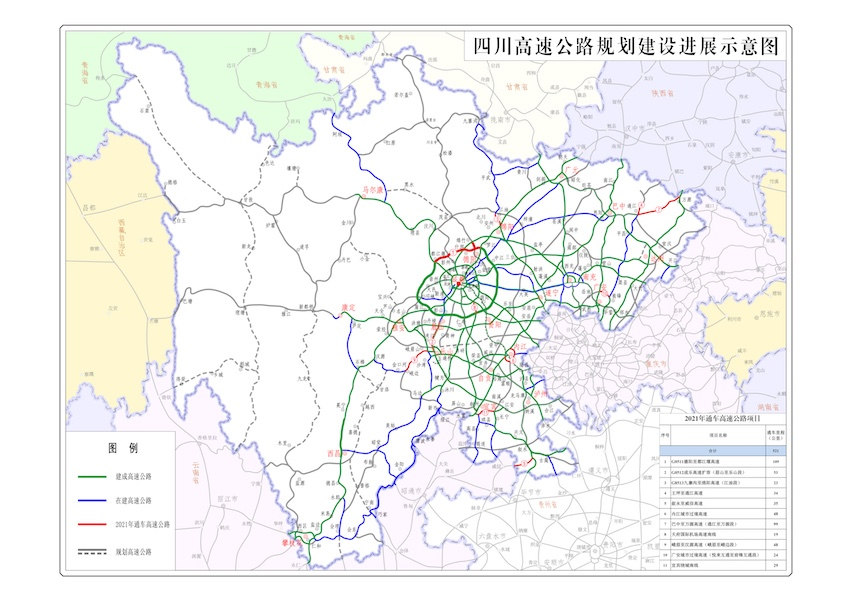 四川高速公路規劃建設進展示意圖。四川省交通運輸廳供圖