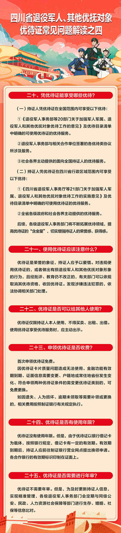 優待證常見問題解讀之四。四川省退役軍人事務廳制圖