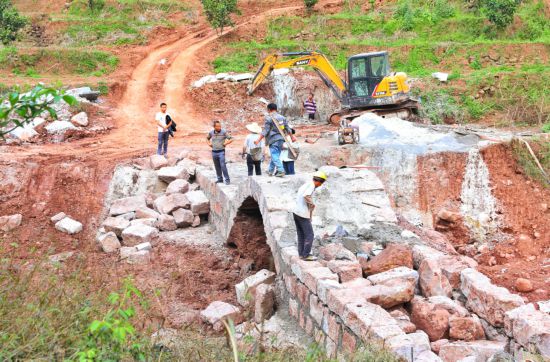 如今,紅軍入川第一橋(巖桑溝興橋)項目納入古藺縣“四渡赤水”紅色文化傳承帶的項目。在離橋一百米遠的地方,工人師傅們正在修砌橋墩、鋪橋面,干得熱火朝天!斑@座橋已經建了10多天了,現在橋拱已經初具雛形,等橋修好了,方便游客站在新修的橋上欣賞‘紅軍入川第一橋’,屆時,我們這個山溝溝也鬧熱起來了!闭谛迾虻牟軒煾嫡f。