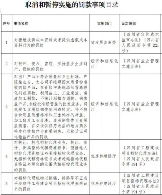 原標題:四川省政府擬取消和暫停行使25項罰款事項