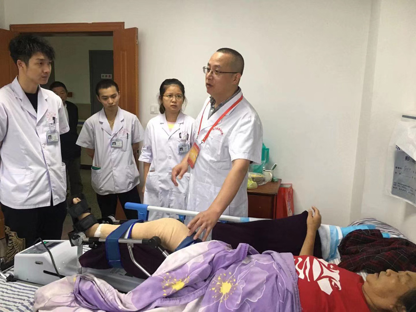 劉顯東教授為病人診治腿傷。受訪者供圖