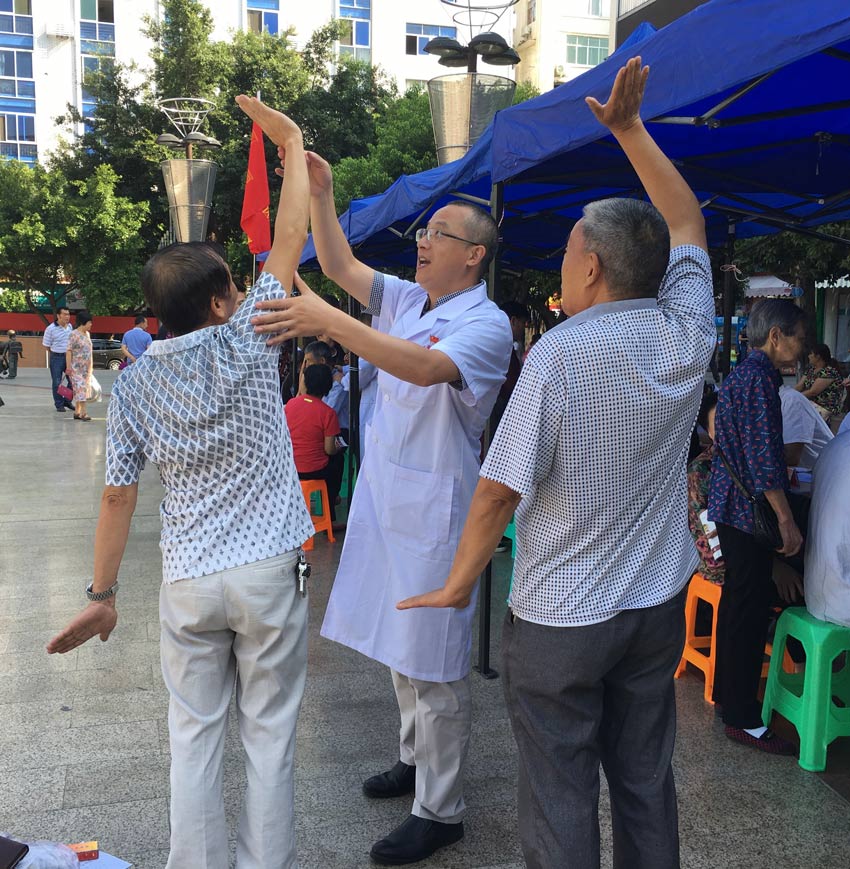 劉顯東教授指導群眾通過練武強身健體。受訪者供圖