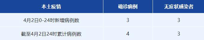 人民網成都4月3日電 (王波)據成都市衛健委消息,4月2日0-24時,成都市新增本土確診病例3例,新增本土無癥狀感染者3例。截至4月2日24時,成都市本輪疫情累計報告本土確診病例4例,本土無癥狀感染者3例。