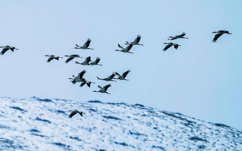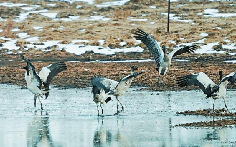 有“濕地精靈”之稱的黑頸鶴是世界上唯一生長、繁衍在高原的鶴類。每年3月中下旬,在云貴高原越冬的黑頸鶴開始遷飛,它們陸續遷徙至我省的若爾蓋草原、紅原大草原繁衍后代。等到11月氣溫回落,這些黑頸鶴又將再次南遷。