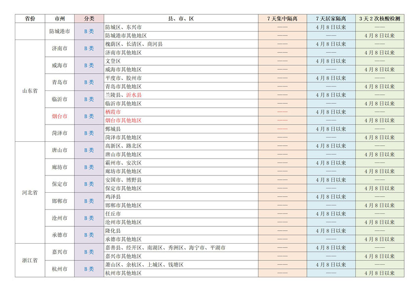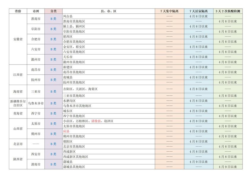對7天內有B類地區旅居史的來(返)川人員,按以下方式實施分類管理: