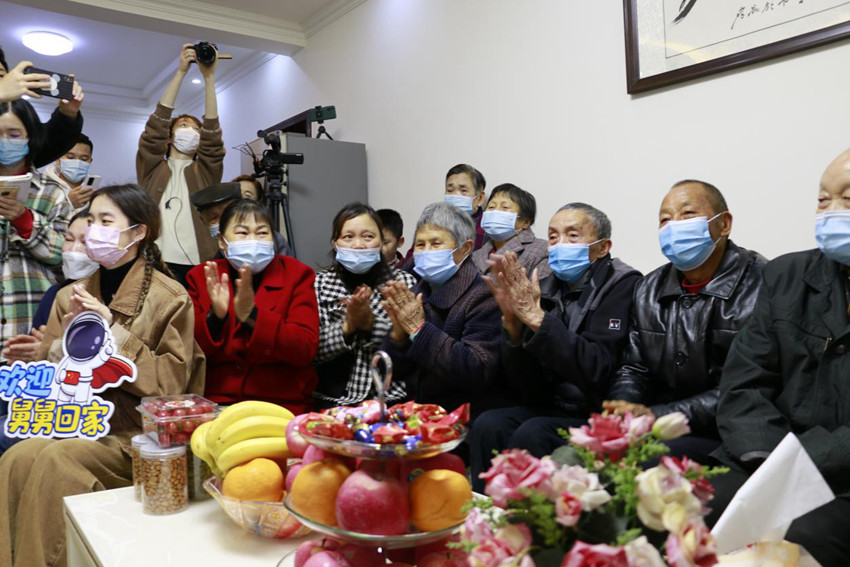 4月16日11時05分,神舟十三號航天員翟志剛、王亞平、葉光富全部安全順利出艙。在四川天府新區萬安街道葉光富母親家中,一家人整齊地坐在電視機前,隨著神舟十三號載人飛船的畫面不斷出現,大家接連發出陣陣歡呼聲。