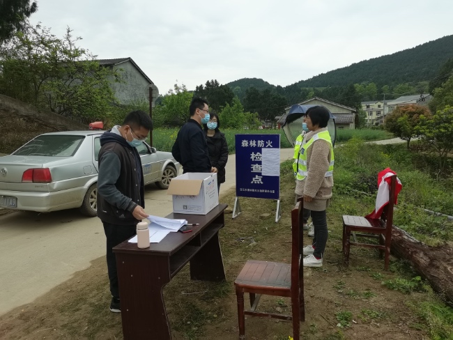 寶石鄉鄉長龔荻浩帶隊進村到卡點督導村社清明節期森林巡山卡點值導情況。四川省應急管理廳供圖