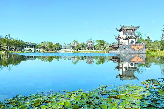 亭臺樓閣、雕梁畫棟、小橋流水……一座座仿古建筑與湖面交相輝映,人文景觀與自然景觀在這里巧妙結合、相互映襯。隨著成都大運會日益臨近,由成都城投集團修建的天府藝術公園·蜀園于4月30日正式開園,向公眾免費開放。