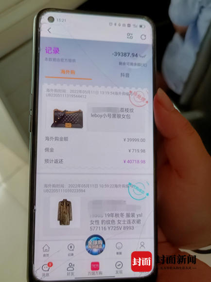 5月11日,何女士先后充值了15000元,完成了價值5999元、15659元的兩筆訂單,而面對第三筆金額高達39999元的訂單時,何女士驚呆了,這比她所有賬戶余額還要多。