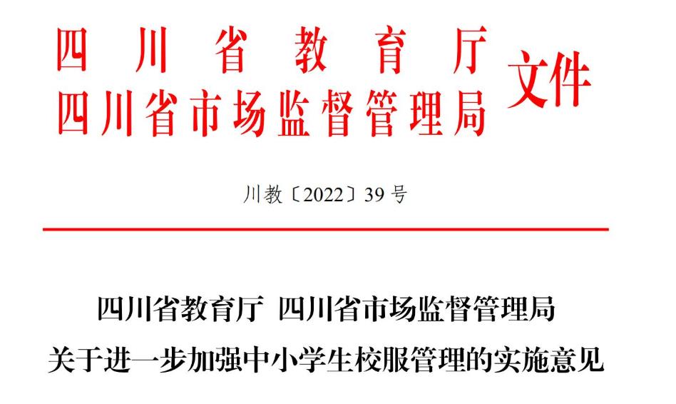 人民網成都5月24日電 (王波、袁菡苓)據四川省教育廳官網消息,昨日,四川省教育廳、四川省市場監督管理局發布關于進一步加強中小學生校服管理的實施意見(以下簡稱“意見”)。