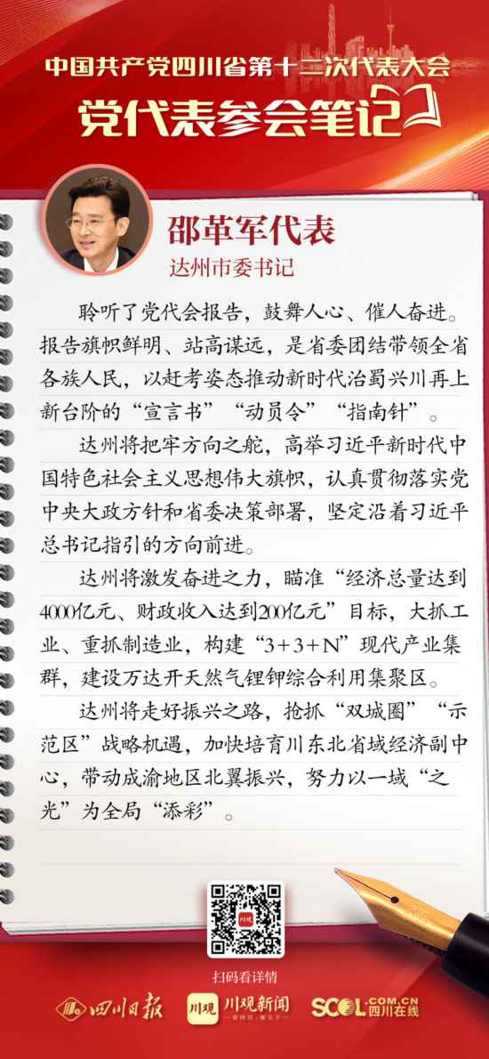黨代表參會筆記丨達州市委書記邵革軍:努力以一域“之光”為全局“添彩”