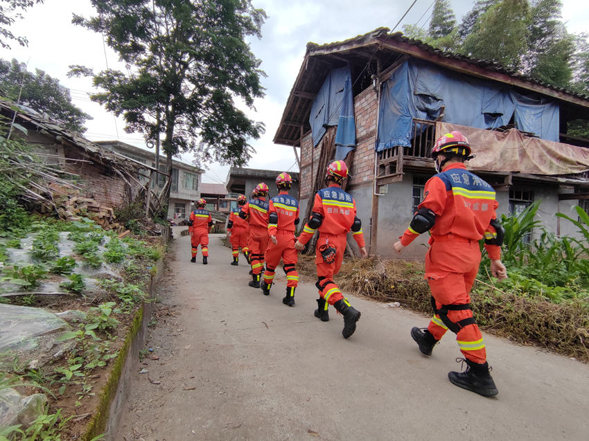 四川省消防救援人員在排查災情。四川省消防救援總隊供圖