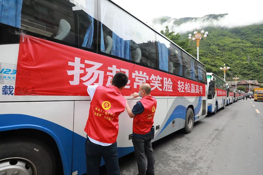 人民網成都6月5日電 (郭瑩)6月4日下午3點,15輛應急客車從四川省雅安市寶興縣出發,去往雅安市天全縣。車上搭載著即將參加2022年高考的329名高考考生和113名考務人員。