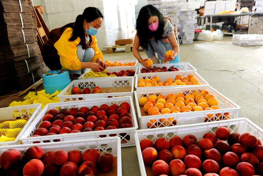 得益于優越的土壤、水、光照等自然條件,加上長期的悉心照料,這里的黃桃果皮色澤誘人、味道香甜可口,很受市場歡迎。產業園為充分滿足市場需求,開辟了“線下批發銷售+線上微店經營”的銷售模式。在線上,黃桃被“爆單”;在線下,每天還有不少人慕名到園里來采摘購買。