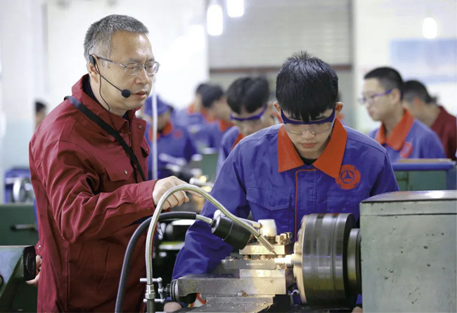 在該校校長郭大治看來,職業院校一定要有社會企業的參與,才能更好實現產教融合、校企合作。為此,四川鍋爐高級技工學校與企業雙向奔赴,“引校入企、引企入?!?,帶領學生到企業教學實習,包工包線進行實際生產實習;將企業產品納入學校加工,模擬企業實際生產,鍛煉學生實踐操作能力。