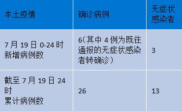 7月19日0-24時,成都市新增本土確診病例6例(其中4例為既往通報的本土無癥狀感染者轉確診),新增本土無癥狀感染者3例;新增境外輸入確診病例2例,新增境外輸入無癥狀感染者3例;新增確診病例出院2例,4例無癥狀感染者解除集中隔離醫學觀察。
