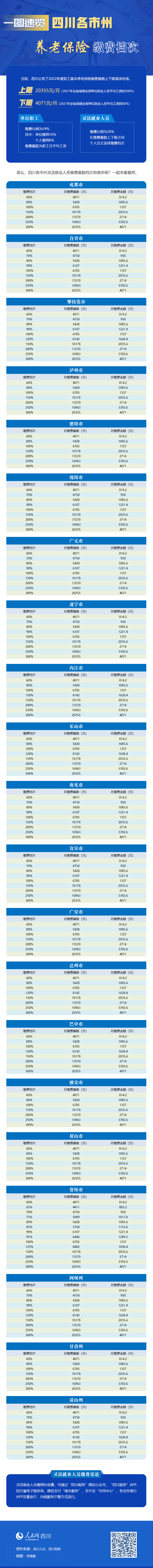 一圖速覽四川各市州養老保險繳費檔次