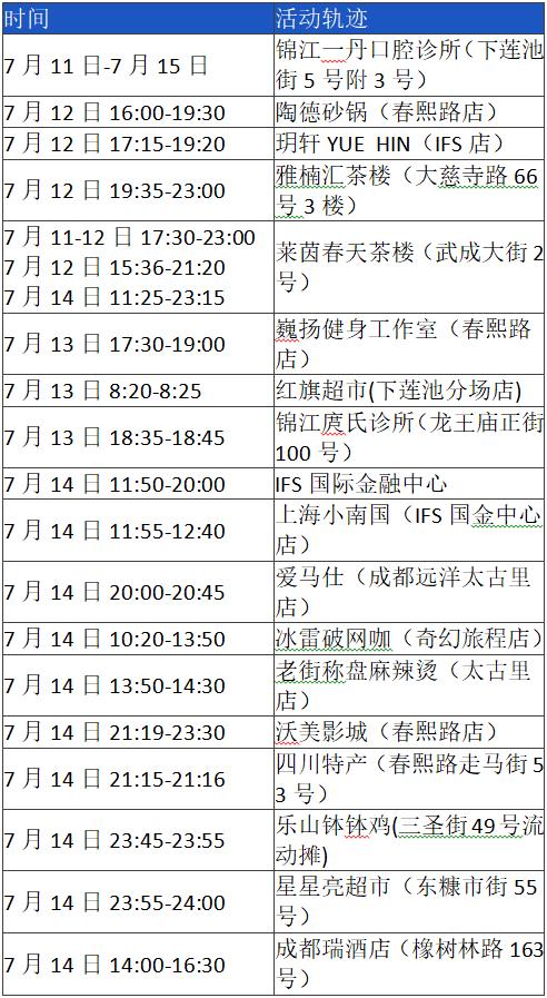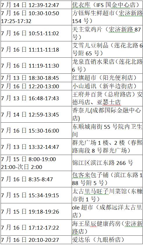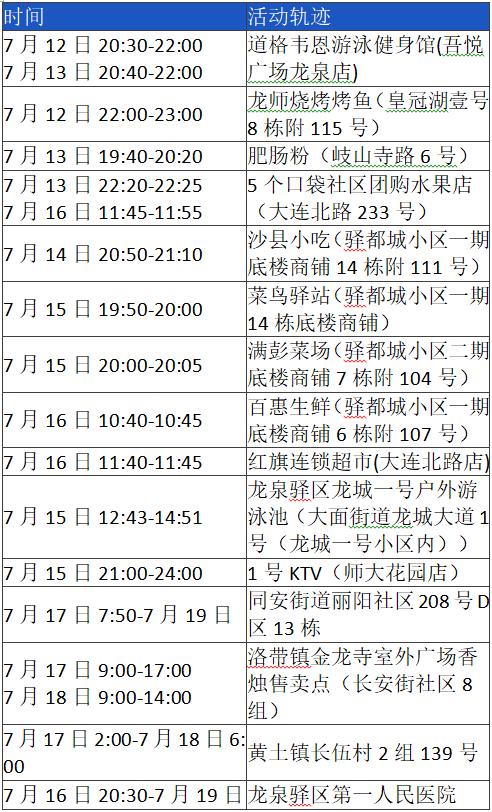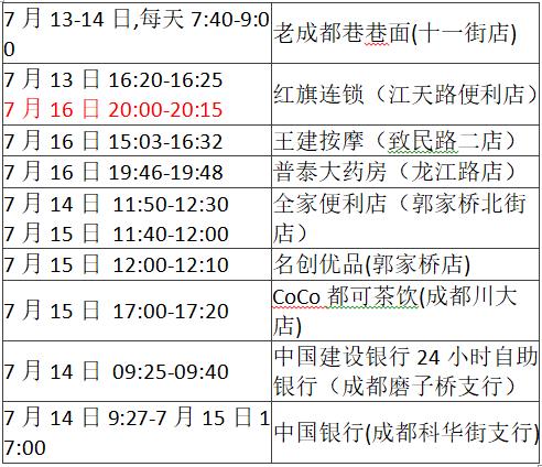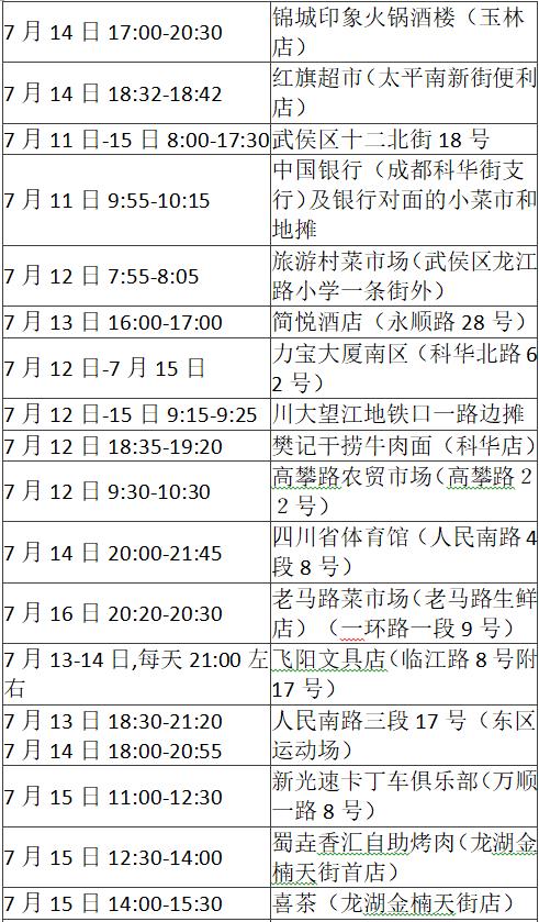 《成都市“0715”本土疫情病例活動軌跡風險點位一覽表》