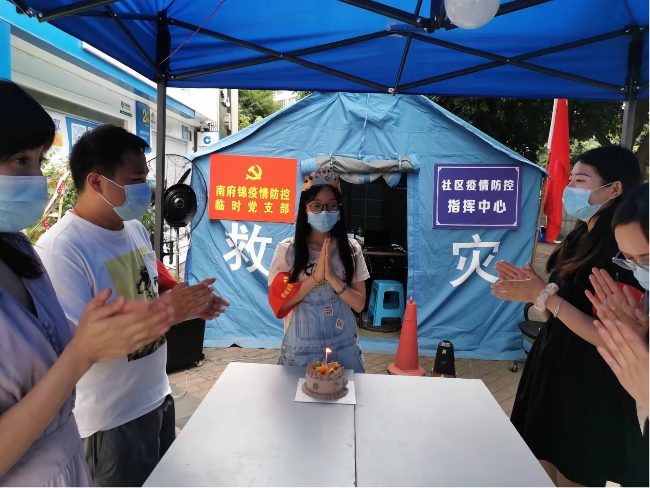 這樣的溫暖,從封控小區里延續到小區外。賀娟娟是社區負責疫情防控的黨員工作人員,7月18日下午,同事們為已經堅守崗位40多個小時的她,在封控小區門口過了一個特別的生日。她說:“很感動!感謝為我過生日的戰友。沒想到用這樣特別的方式迎來自己的30歲,希望疫情早日結束,大家都能回歸正常生活?!?/p>