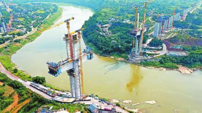 7月28日,渝昆高鐵川渝段控制性工程——瀘州沱江特大橋主塔實現封頂,為該段早日建成通車創造了有利條件。