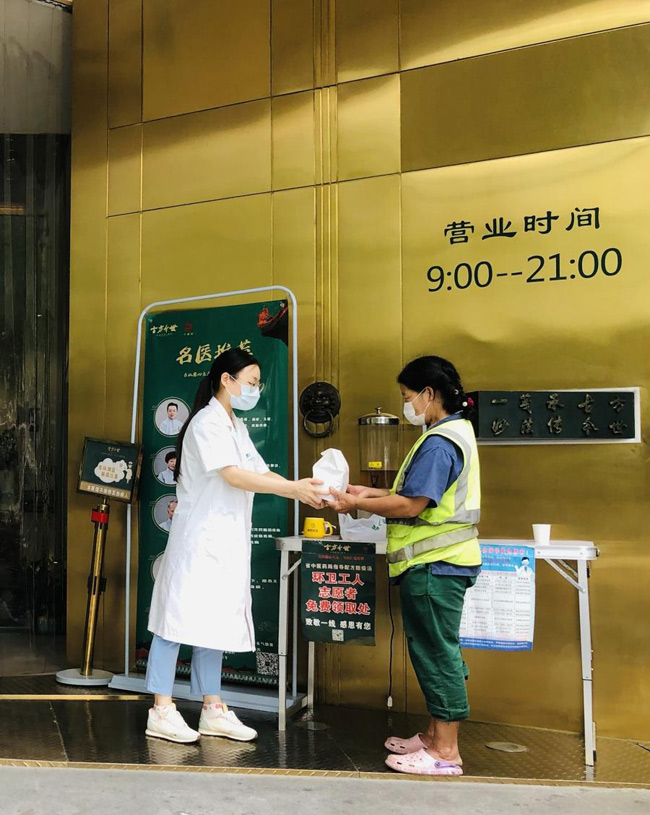在古方今世中醫館,工作人員除了把熬制好的中醫藥“防疫湯”分裝、打包,通過主動配送、預約定制等方式,免費為周邊的抗疫一線工作人員、企事業單位、志愿者、環衛工人和社區群眾提供中醫藥服務。來醫館領藥的居民說:“雖然是免費,但是不減質,他們家熬的藥用料充足、藥味濃?!?/p>